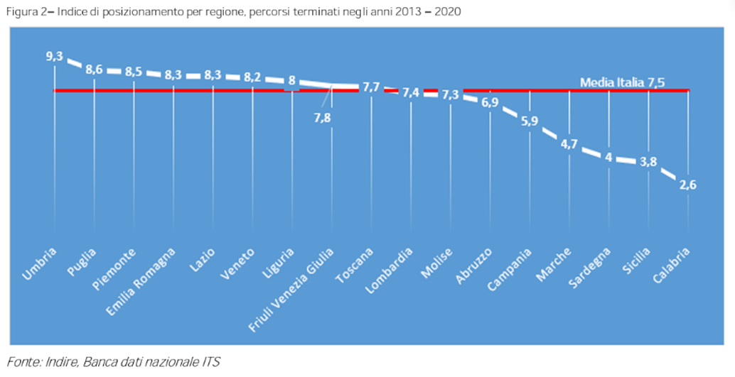 Indice di posizionamento per regione, percorsi terminati negli anni 2013-2020